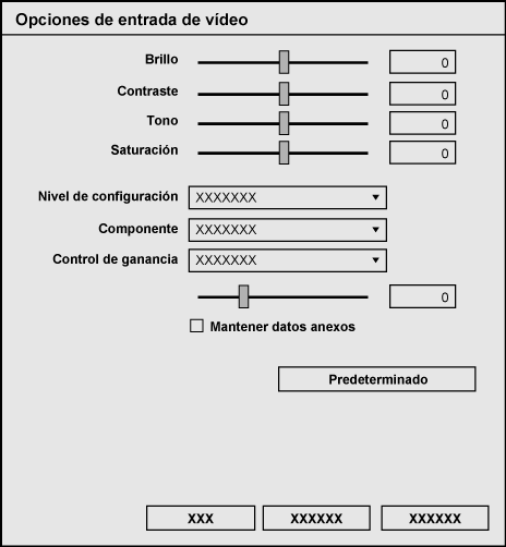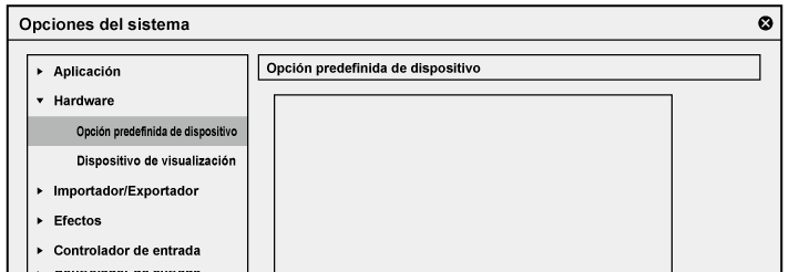 Muestra los dispositivos de captura de vídeo conectados al sistema. Haga clic en [Opción de vídeo] para visualizar los ajustes detallados dependiendo de su dispositivo de captura de vídeo. Para más información sobre los ajustes, consulte el manual de su dispositivo. |