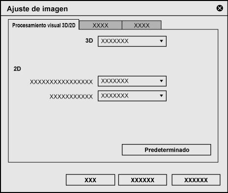 Muestra el cuadro de diálogo [Opciones de ajuste de imagen]. Ficha [Procesamiento visual 3D/2D] |