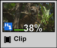 El progreso de ejecución de las tareas en segundo plano puede comprobarse en la barra de estado en la ventana de línea de tiempo en la visualización de clip.