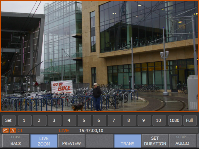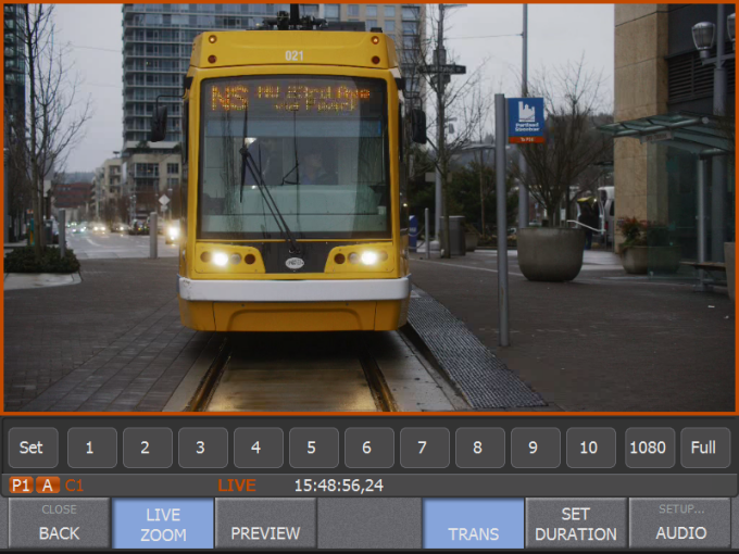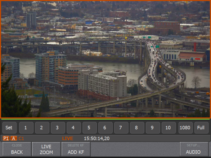 - Select LIVE ZOOM to enter Live Zoom mode. In Live Zoom mode you can manipulate the Region Of Interest (ROI), with pan transitions and preview, on the live record train.