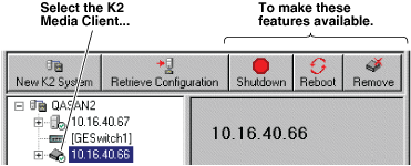 JavaScript must be enabled in order to use this site.Please enable JavaScript in your browser and refresh the page. Accessing K2 client features in the K2Config application In the K2 System Configuration (K2Config) application , features for working on a shared storage K2 client are as follows: Parent topic: Working with K2 clients